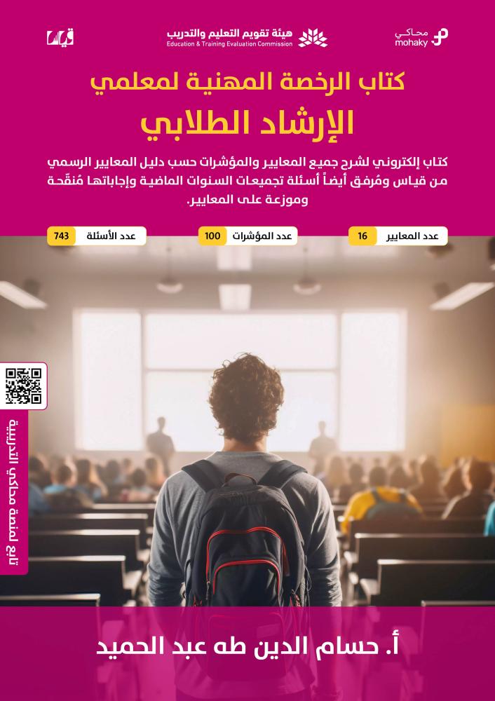 عرض لفترة محدودة: احصل على ملزمة الرخصة المهنية تخصص الإرشاد الطلابي (PDF) شاملة لشرح جميع المعايير والمؤشرات وحلول مُنقّحة لأسئلة التجميعات السابقة وذلك مقابل 100 ريال فقط شامل الضريبة.